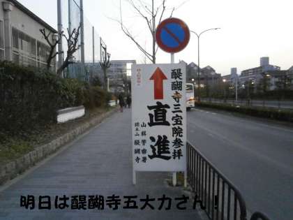 明日2/23(土)は醍醐寺ご大力さん「もちあげ」です。学校の周りにも立て看板が設置されました。