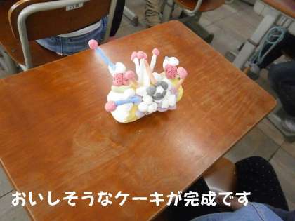 紙ねんどで作っていたケーキができあがりました。今日は,みんなで品評会をしました。