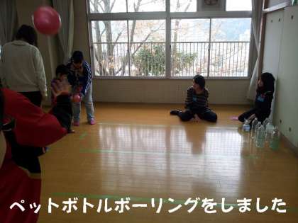 ペットボトルボーリングをしたり,園庭で遊んだり,楽しい時間はあっという間に過ぎてしまいました。