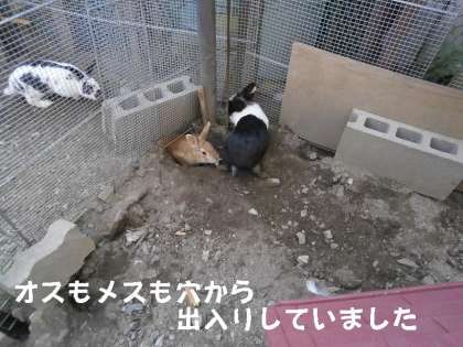 油断も隙もありません。「こら!」と一喝すると,メスうさぎはトンネルを通って