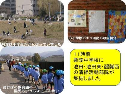 毎年,学校→折戸公園→山科川堤防→栗陵中学校の清掃活動をしています。今年はゴミが少ないように思われたのですが,いざ出発すると,植えこみや道路わき,堤防斜面等にいっぱい落ちていました。