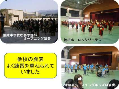 栗陵中学校の吹奏楽部のオープニング演奏の後,3小学校の子どもたちの発表が行われ盛り上がりました。