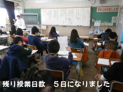 担任の先生との授業も残り少なくなり,いろいろな思いがあると思います。先生もいつになく力が入って,話す時間が長くなっています。