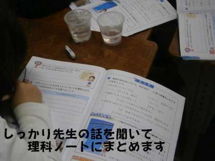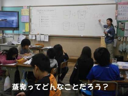 空気の中に水蒸気があるのだろうか?という問題にみんなの考えを発表して,答えを出していました。また,実際に実験をして確かめもしました。