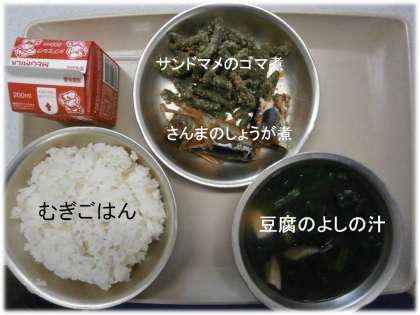 「むぎごはん」「豆腐のよしの汁」