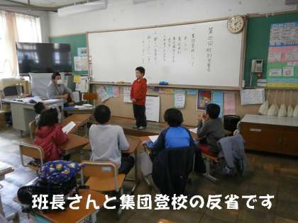 5校時に今年度最後の「町別児童集会」を行いました。各町内ごとに集まって,今年度の集団登校の反省や,来年度の登校班の班長さんと副班長さんを決めました。