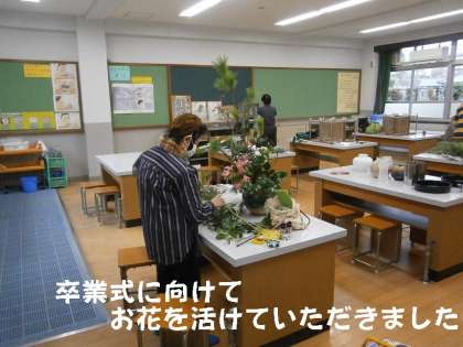 午後から地域女性会の皆さんにきていただき,卒業式の日に飾るお花を活けていただきました。