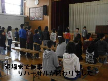 最後の卒業式練習(リハーサル)を入場から退場まで通しで練習しました。
