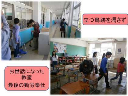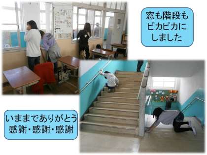 いままでお世話になった学校をきれいにしようと,子どもたち自ら率先して動いていました。