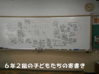 その寄書きを読んでいると,担任の先生と47名が一体となり,とても仲間意識が高かく団結力のある6年生だったと感じました。