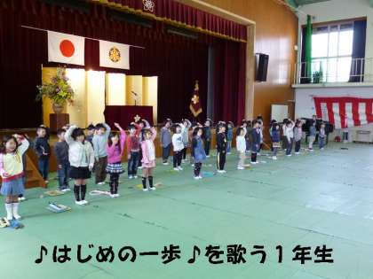 修了式後に1年生は,体育館に残って入学式の発表の練習をしました。