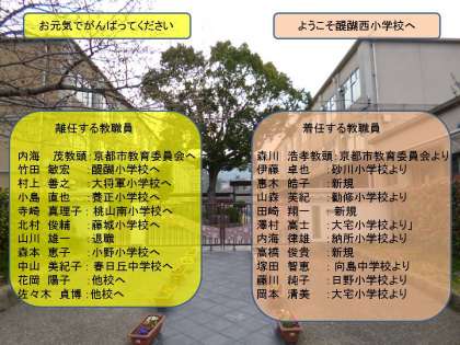 この度の人事異動で,本校教職員の離着任が下記のようになりましたのでお知らせいたします。