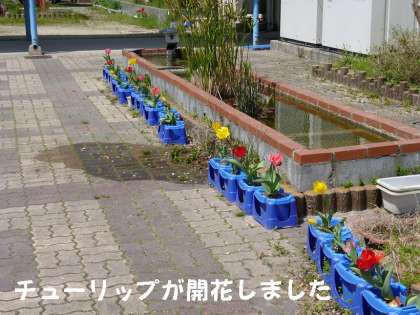 新2年生が植えたチューリップが,一気に開花し始めました。