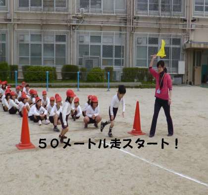 もうやり方は理解しているので,先生からの説明も短時間で終わり,さっそく2人ずつ50メートルを疾走しました。