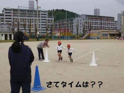 2年生になって初めての体育は,「50メートル走」のタイムを測りました。