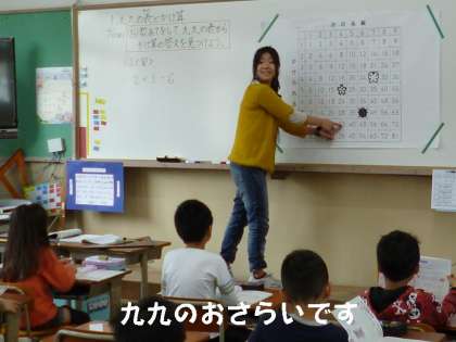 九九の表を使って,先生が出す問題に即座に答えていました。