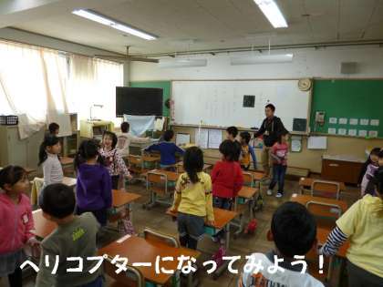 子どもたちは動作化して,「へび」になったり「ヘリコプター」になったりして楽しく「へ」の字を覚えました。