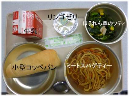 「小型コッペパン」「スパゲティミートソース」