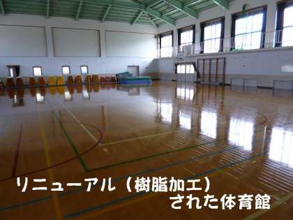 この週末(土日)に,体育館の床をリニューアル(樹脂加工)してもらいました。床全面を樹脂でコーティングしてもらい,鏡のようにピカピカに光りました。とても気持ちいいです。