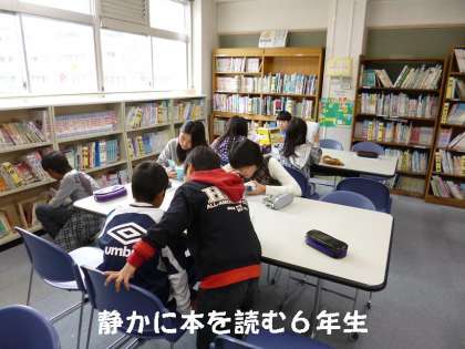 1年生の教室からの歓声も図書館まで聞こえてきましたが,6年生は静かに読書タイムです。