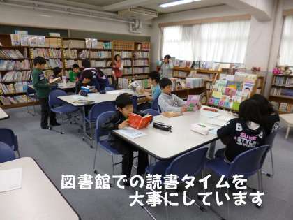 一週間に一度は,授業で図書館を利用します。昨年,ビフォー・アフターですっきり使いやすくなった図書館での読書は,子どもたちにとって貴重な時間です。