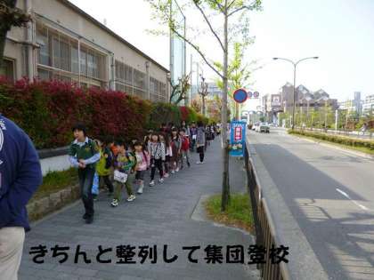 昨日,町別集会があり,集団登校や学校のきまりを確認しました。