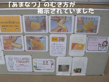 今日は,デザートに「あまなつみかん」が出ました。事前に栄養教諭の北山先生が,「あまなつみかんのむき方」を写真で掲示してくださっていました。