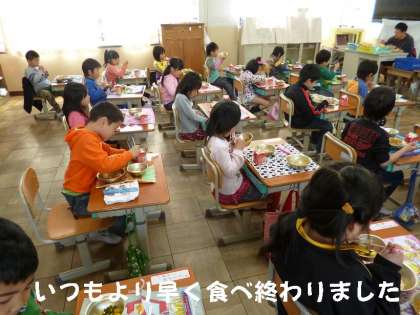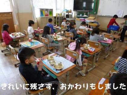 1年生もあっというまにたいらげました。おかわりする子どもたちもいました。