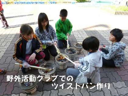今日は,さっそく「サバイバルクッキング」でツイストパンを焼きました。