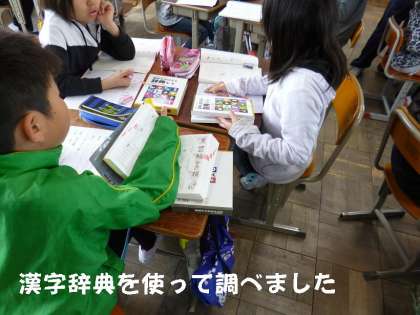 今日は,漢字辞典を使って,漢字を種類分けしていました。