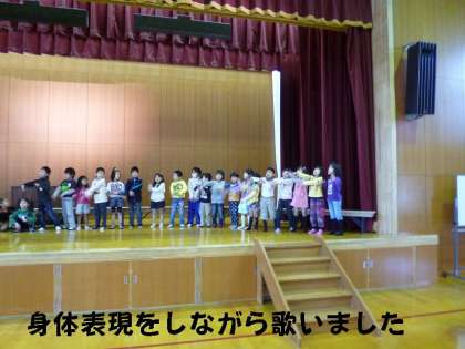 体育館中響きわたる大きな声で,元気いっぱい歌っていました。明日が楽しみです。