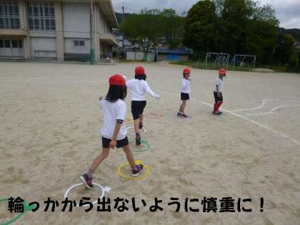 途中,川もとびこさねばなりません。みんな冒険気分で,次から次へとびこして楽しい体育になりました。