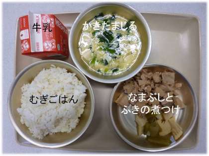 「なま節とふきの煮つけ」は,毎年この時期に春のおばんざいとして,給食に出てきます。苦手な(あまり食べたことがない)子どももいますが,旬を知らせる献立です。