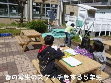 昨日の午後,5年生は校庭に出て写生のスケッチをしました。