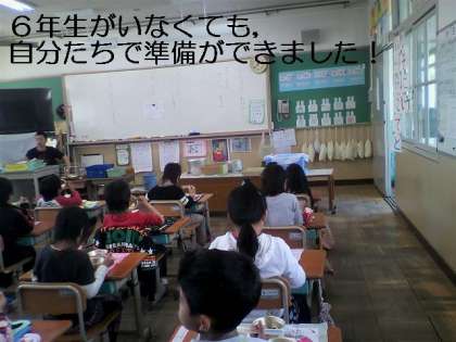 1年生は,入学してからずっと6年生に給食の準備を手伝ってもらっていました。