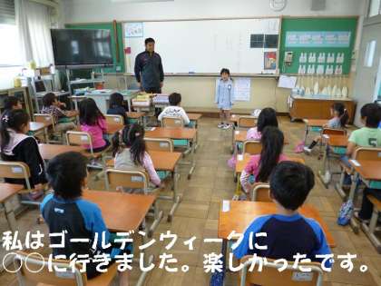 一人一人,連休中にどこかに行ったことや楽しかったことをみんなの前で発表しました。