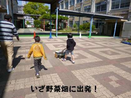 「何の野菜をを育てるの?」と聞くと「ないしょ!」「お楽しみに!」ですって。