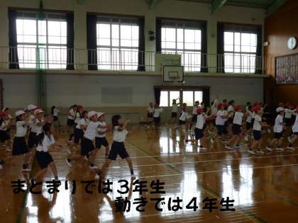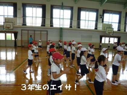 3,4年合同の体育では,運動会に向けて「エイサ」の練習をはじめました。