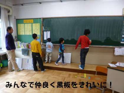 そうじの時間に,みんなで協力して黒板をきれいにしました。