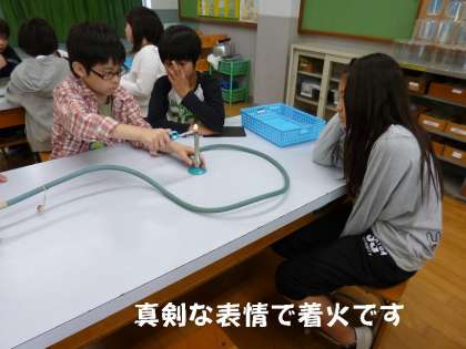 理科の時間に,これから何度も使う「ガスバーナー」の構造を学習し,着火の練習をしました。