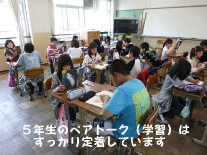 5年生の国語の時間は,しっかり学習ルールが定着しています。さすがと思わせる「ペアトーク」で,授業が進んでいました。