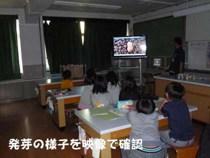 また,理科室では,発芽の様子を映像を使って確認していました。視覚化は子どもたちにとても有効な学習手段です。
