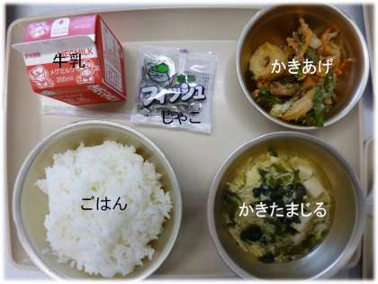 「ごはん」「かきたまじる」「かきあげ」
