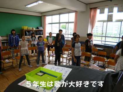 のぞいてみると,いつも大きな声で元気いっぱい歌う5年生でした。
