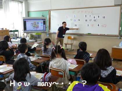 ALTのラモン先生がきてくださって,今日は「How many〜?」の会話の受け応えを学習しました。