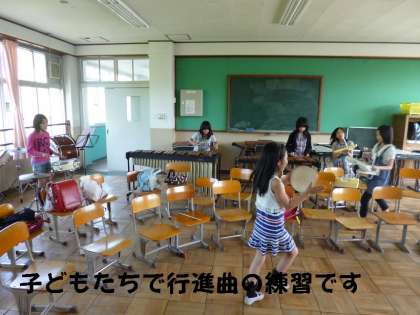 のぞいてみると,なんと先生の姿が見えずに子どもたちだけで練習していたのです。だれがリーダーともなく,みんなでまとまって楽しそうに演奏していました。