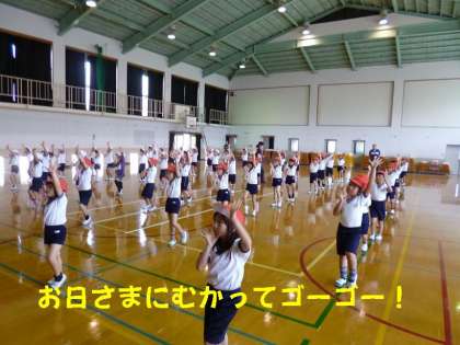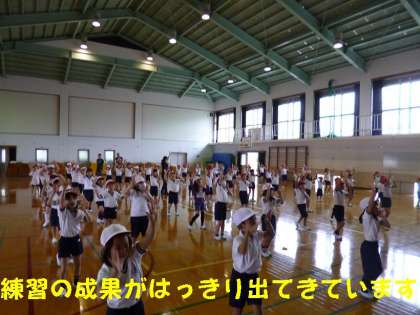練習を積み重ねるごとに,子どもたちの動きが合ってきています。とてもテンポが速く動きの激しいダンスですが,子どもたちは,楽しくお日さまにむかってゴーゴー!です。
