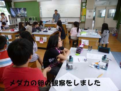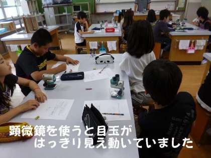 めだかの卵がたくさん手に入ったので,各グループごとに顕微鏡で観察しました。