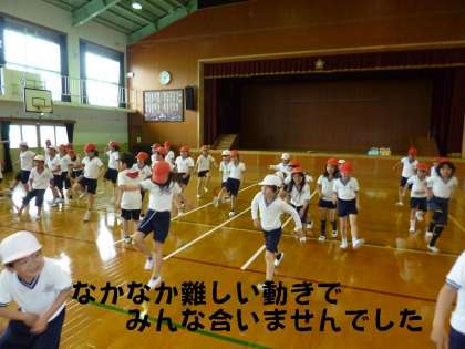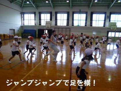 「ジャンプ・ジャンプ・足を横!」簡単なようでなかなか難しくて,みんな合いませんでした。