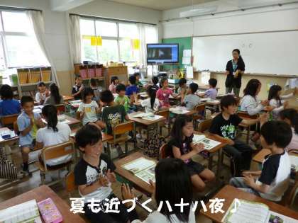 1時間目の音楽で「日本のうた」の勉強をしました。私たち大人も懐かしい,昔から歌われている歌「茶摘み」を動作をつけて歌いました。子どもたちは,歌よりも動作(せっせっせ!)の方に夢中でした。
